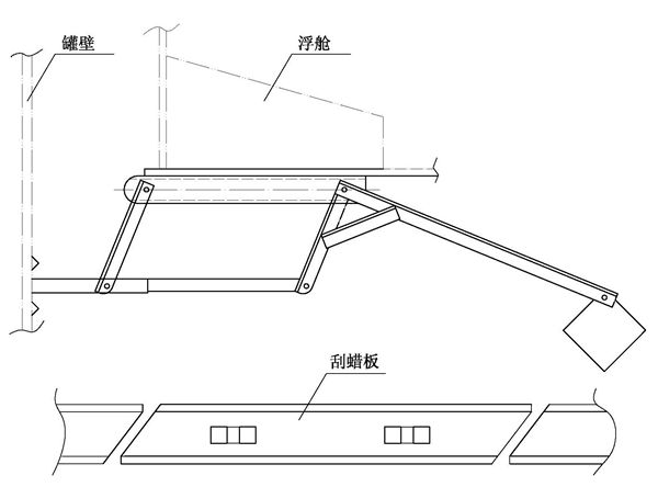 GLQ型重锤式刮蜡器用于外浮顶原油储罐上,安装在浮船底板的下面,刮蜡器随着浮船的升降上下移动,通过与罐壁紧贴的刮蜡板,刮去附在罐壁上的蜡、油垢。